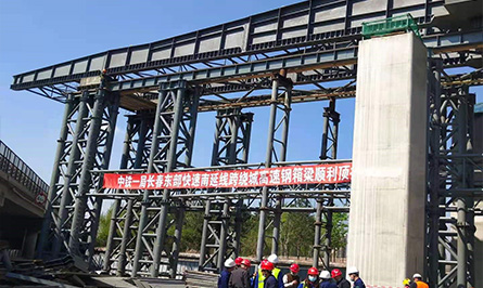 跨越繞城高速公路省內(nèi)首次采用主跨100m連續(xù)鋼箱梁,跨中平直段采用頂推施工工藝,實現(xiàn)施工期間高速公路正常通行,最大程度減少對高速公路交通安全的影響。